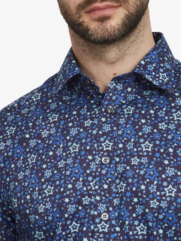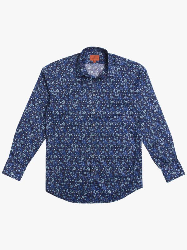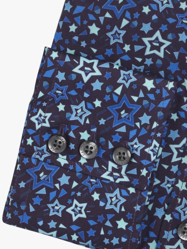 Im uncertain who Igor is or was (answers on a postcard please) but theres something childlike and charming about this design. The five sided stars are broken up with shards and fragments and its an essay in the use of blues. I love the rich indigo background. Theres also a slight retro feel, 1950s Ben Chairs vibe going on. Perfect with jeans and stout shoes, peacoat and a walk with the first falling leaves of autumn. Cut on our more formal block with a gently tailored fit.
