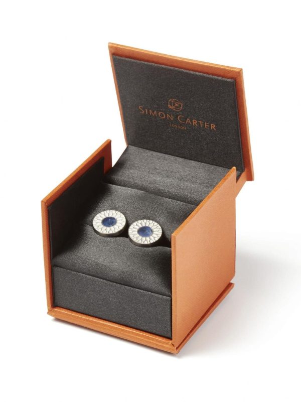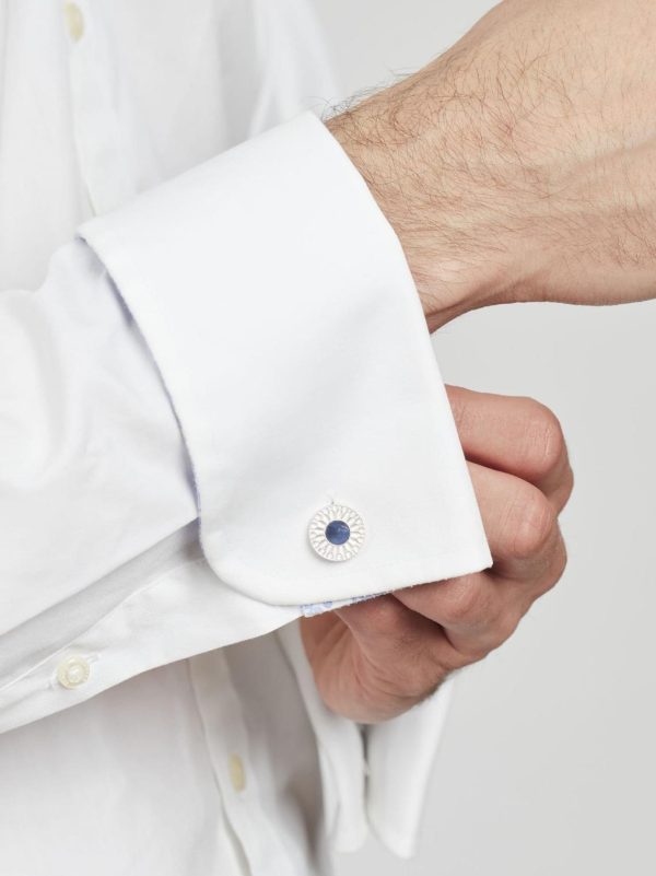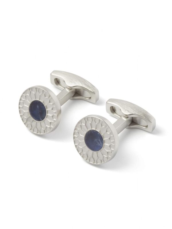 This simple design has an Arts and Crafts feel. It could be a Lutyens detail from Great Maytham house. I like the way it frames the central disc of sodalite and catches the light from all directions.