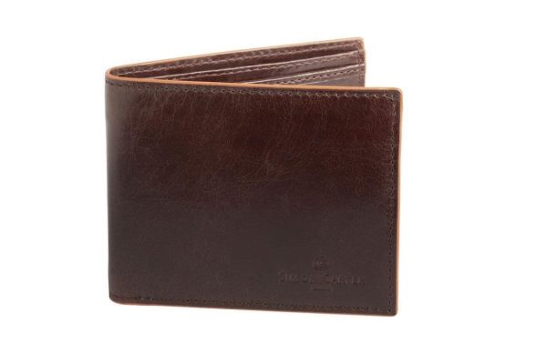 A wallet which has been with us for ages. Because it’s a classic. Made from good quality leather, this useful jeans wallet features six card compartments, two for notes and two side compartments. The wallet is lined with our house paisley and finished with a Simon Carter signature cinnamon piped edge to contrast nicely with the deep brown leather.