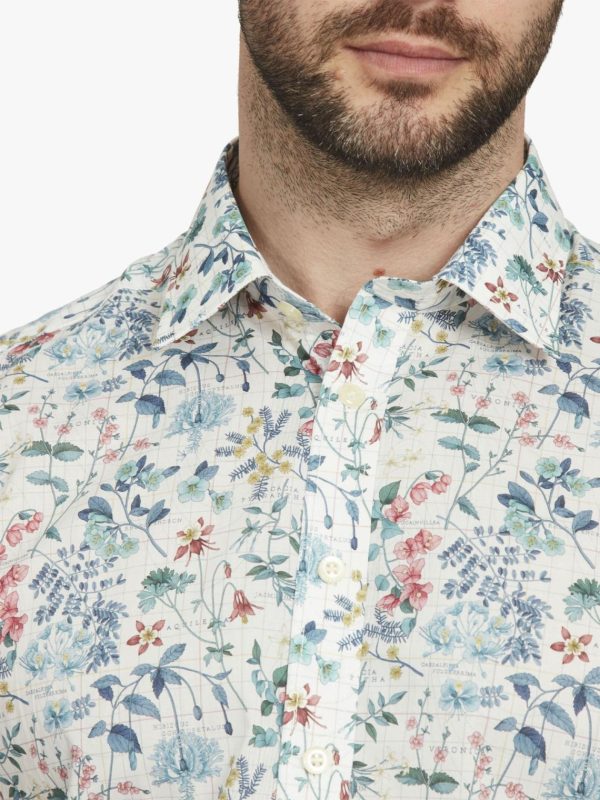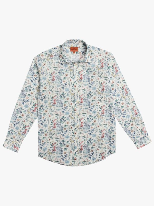 Experience Liberty’s finest craftsmanship with this collector’s journal-inspired shirt featuring exquisite botanical prints from around the globe. Discover Columbine from North America, Bougainvillea from South America, and exotic Peacock Flowers from the Caribbean. The sophisticated scale and delicate typography create an intriguing grid background complemented by an artistic spiral design. This versatile shirt pairs perfectly with everything from your favorite navy suit to casual chinos, and layers beautifully under our Alan Paine Merino Wool lightweight crew necks. Expertly tailored for a polished fit.