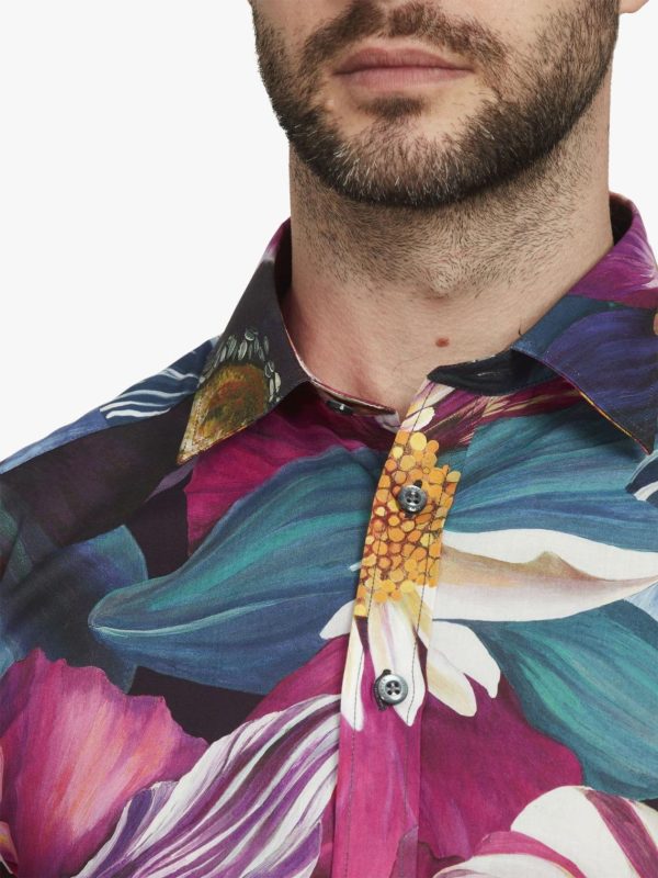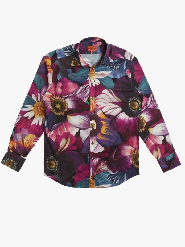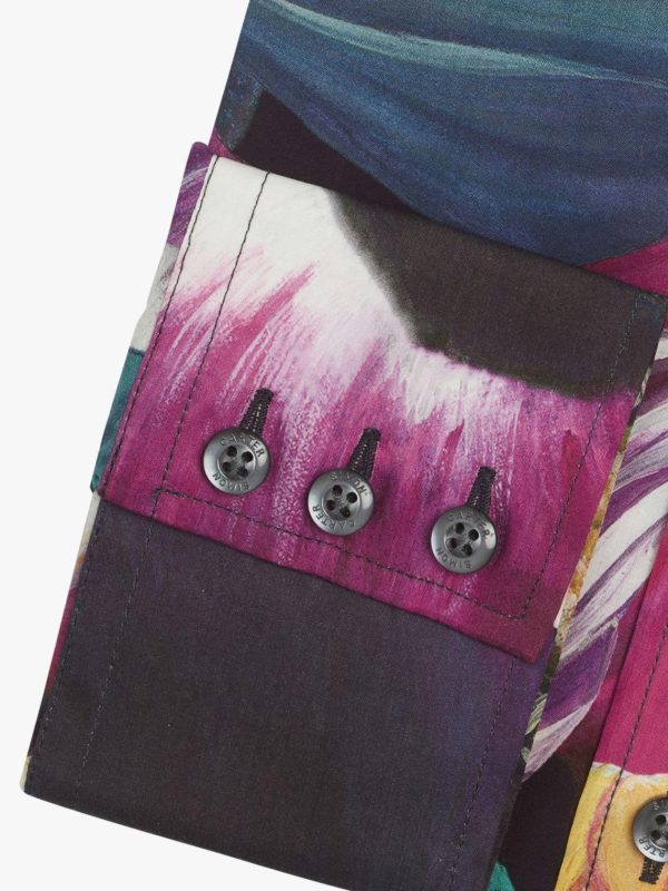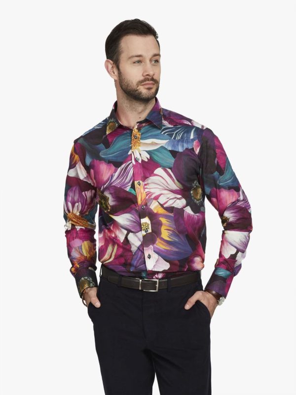 Make a statement that commands attention. This exceptional Simon Carter shirt features premium Liberty Fabric with a breathtaking artistic print that blends tropical florals with contemporary sophistication. The striking pattern creates a visually captivating piece that maintains an elegant, wearable versatility. Perfect for the style-conscious man, this shirt pairs effortlessly under a linen blazer or standalone for making a powerful impression at social gatherings. Experience the confidence that comes with wearing truly distinctive craftsmanship. Expertly cut on our formal tailored block with signature three-button cuffs for a refined finish.