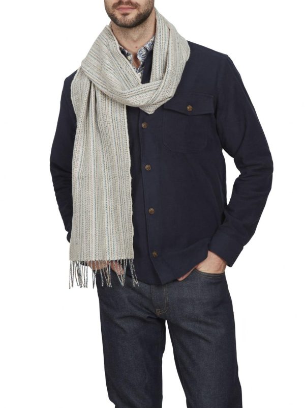 As part of our ongoing project to reduce waste and be a greener business, I’m delighted that this subtle and intricate scarf is made from Wool Ends. At the weaver’s in Donegal, the Edit Production processes result in thousands of small off cuts of different wools. We’ve developed a way to turn this by Edit Product into a multicoloured herringbone, softened by being woven on a cream warp. Furthermore, each one is slightly different. Now you can wrap up and feel good inside and out! It’s a generous 2m long for a variety of looks.